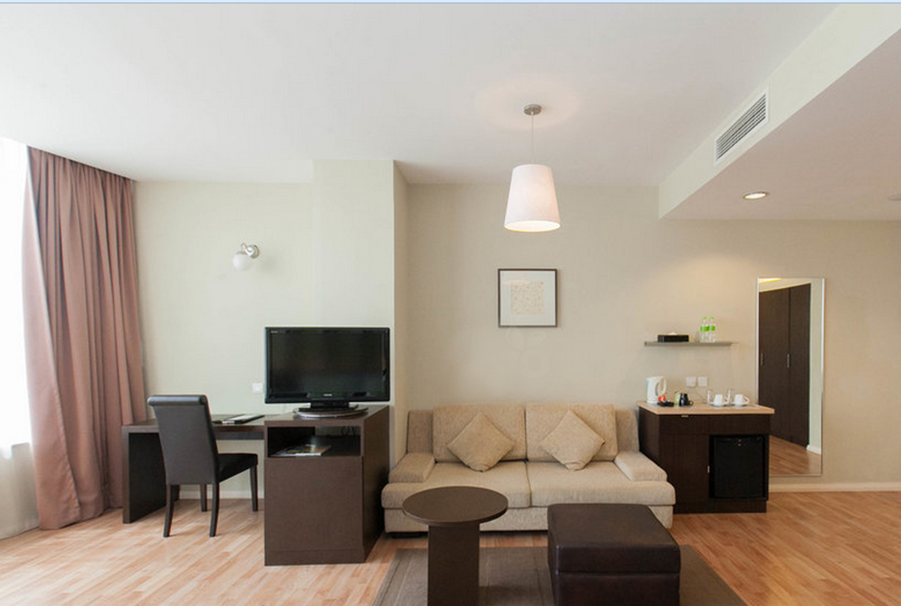 This spacious, contemporary room offers business executives or leisure travellers a luxurious space and suite experience, featuring a work and sofa area, large wardrobe and upgraded amenities. Essentials include plush bedding and rugs, three-seater sofa, extra luggage space, rain shower with our custom, eco-friendly 3-in-1 citrus body wash, mini fridge, digital safe, free Wi-Fi internet connection, universal socket, bottled water and quiet air-conditioning.