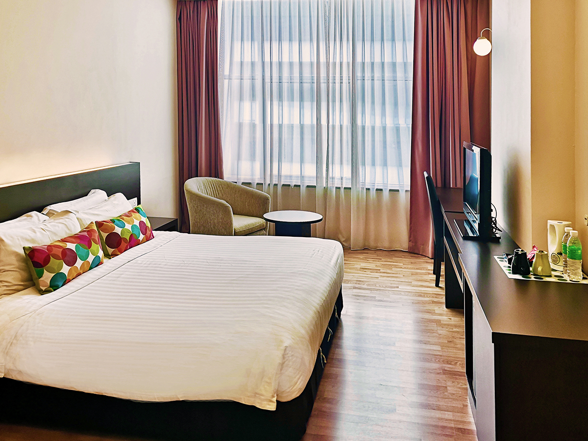 Standard City Room Size 19m2, city view Bed Type 1 King / 2 Single Max. Guests 2 pax Wardrobe/Desk Compact Safebox Assisted Mini Cooler Upon request MORE DETAILS